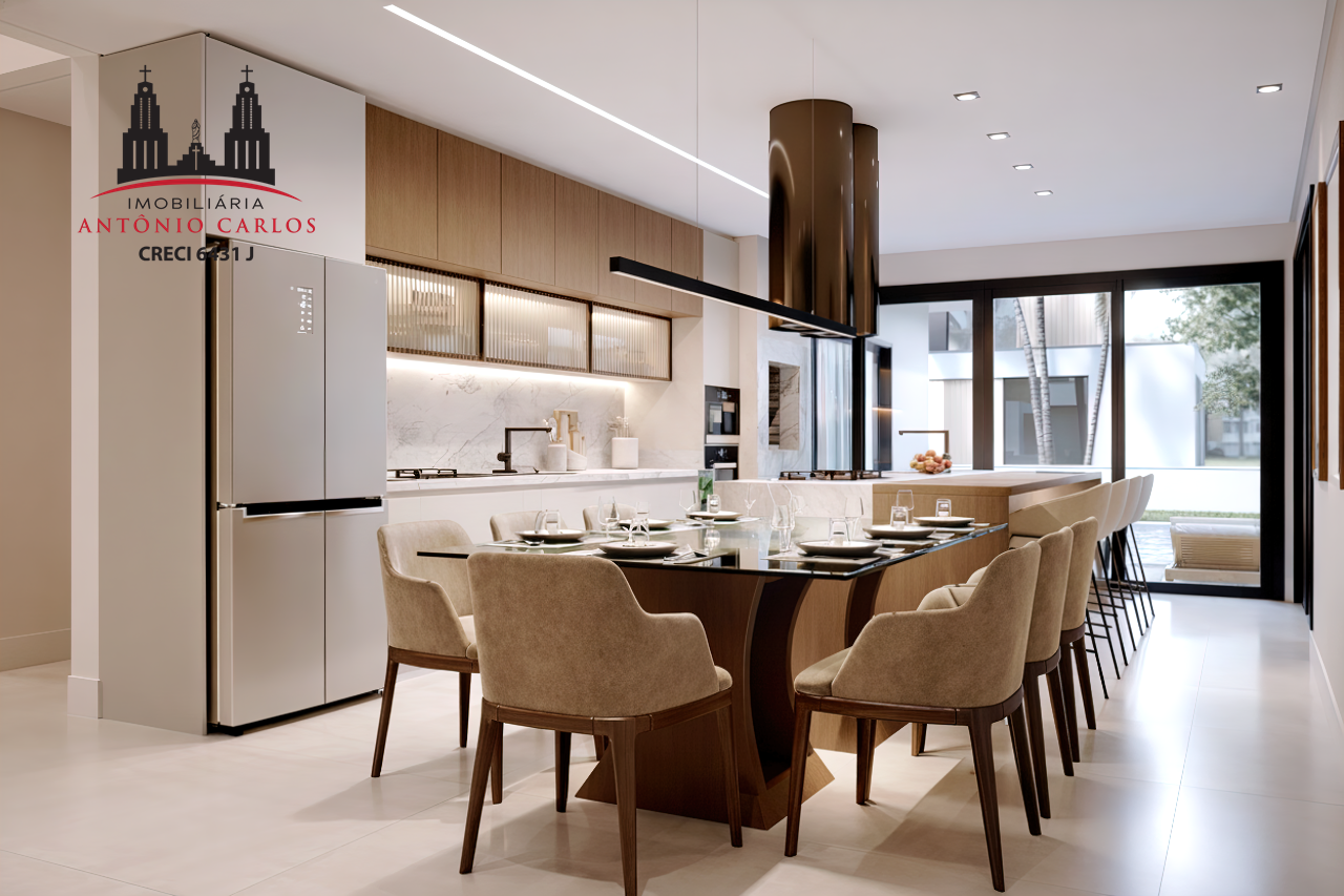 Cozinha integrada à área gourmet, com churrasqueira, perfeita para receber família e amigos