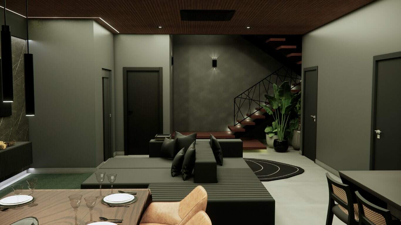 Com uma área total de 410m², distribuída em diversos níveis e um subsolo com 130m² para fechamento futuro, esta residência é sinônimo de modernidade e funcionalidade.
